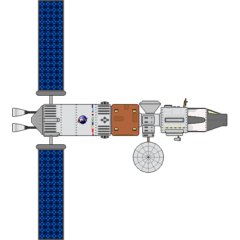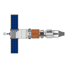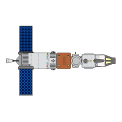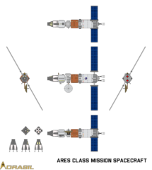 The joint ISA/NASA Ares spacecraft were, as with the Apollo program six decades earlier, comprised of two primary vessels: one a direct-ascent intrasystem propulsion system and the other the planetary descent vehicle. The first, generally referred to as the command module, was in reality itself defined by three specific modules: laboratory, habitat, and engineering. The lab was the smallest but not limited to simply scientific inquiries, as it had the docking/airlock assembly, orbital mission cockpit, and scientific compartment, with direct access to the data from the externally-mounted LIDAR and trans-spectral imager. Connecting the habitat module to the forward one was the communications trunk, which comprised 95% of the mission’s transceivers, as well as the docking port with the craft’s sole escape pod. A medium-sized communications dish on a 360/90-degree extendable gimble was suspended on the ventral side. The habitat module had all of the expected amenities for supporting the multiple weeks of round-trip transits, including sleeping & dining arrangements, exercise and medical bays, and shower & toiletry facilities. Bringing up the rearmost section was the engineering module, defined not simply by the two-nozzle ion drive, but also by the two prominent solar panels that served as a secondary means of recharging onboard battery systems. A maneuvering thruster array ringed the section, directly aft of the habitat module.