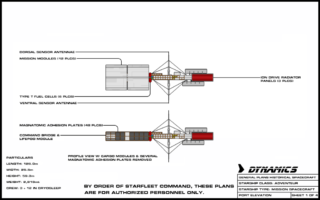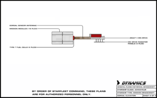 Other notable features with the Aventeur design included a command bridge module that served as an eject-able lifepod, a feature that would be repeated in several other long-range explorers in the coming decades. On the aft, three revolutionary radiator panels employed newly-developed anti-photon field emitters, behind extremely fine water tubules, giving off a deep red glow and providing cooling effects far in excess of what was needed.